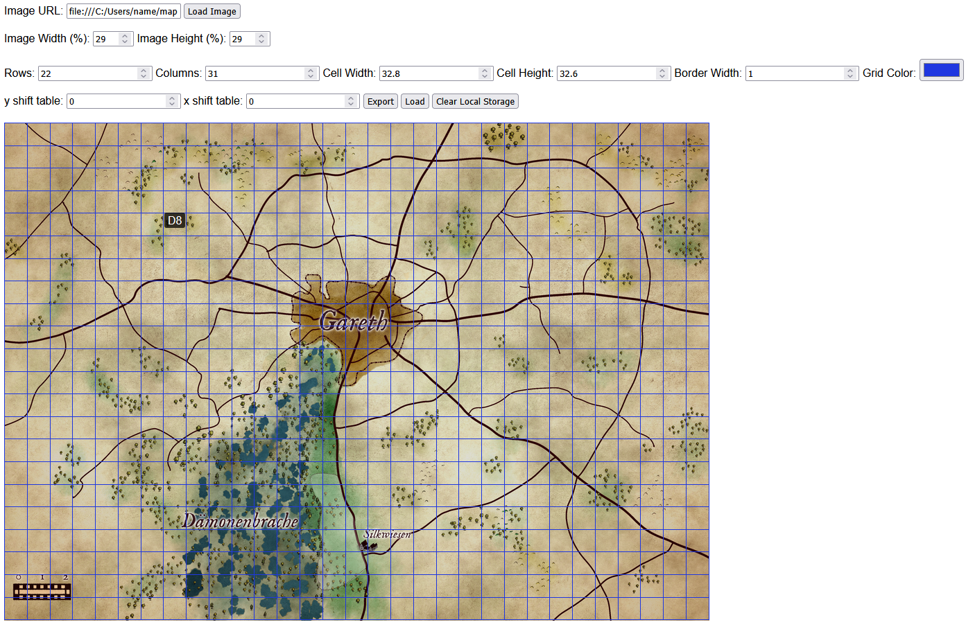 - Load Your Map: Upload an image or enter the URL of your grid map.